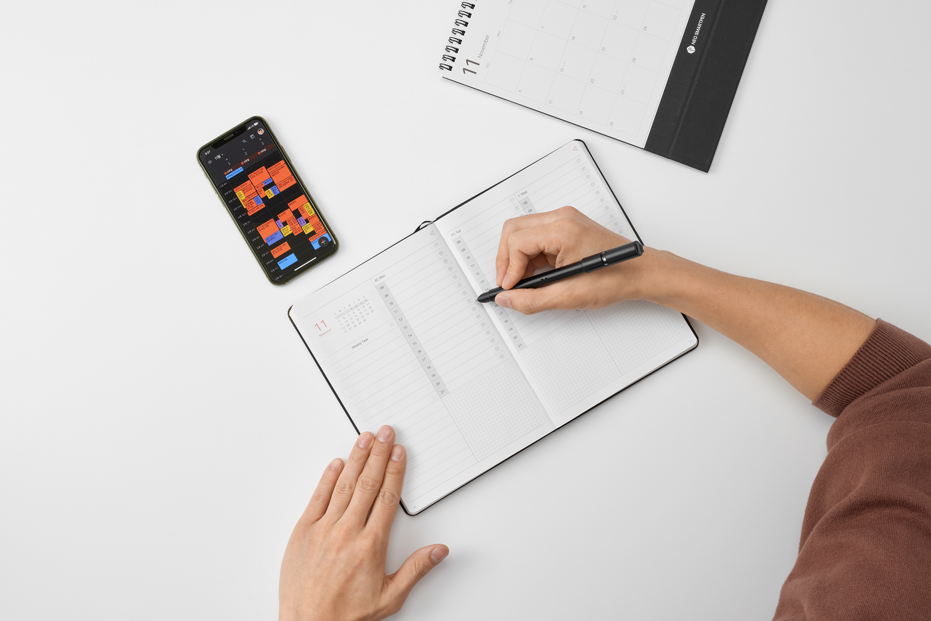 Writing it down! When you write your next meeting on the planner with M1+, it is synced to the calendar app of your choosing automatically!